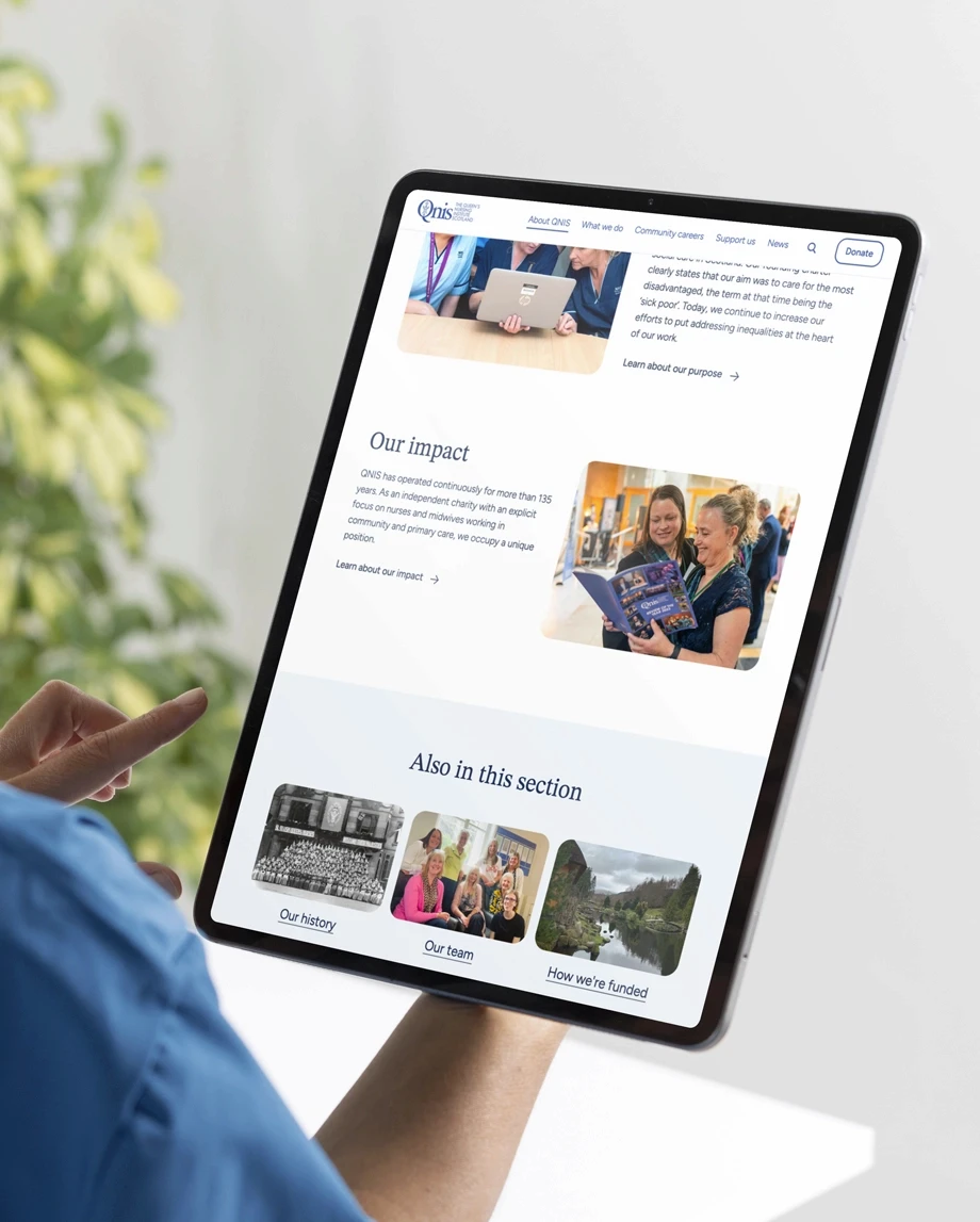The Queen’s Nursing Institute Scotland supports community nursing across the country. As the organisation evolved, its website needed to better reflect its purpose, impact and areas of support.